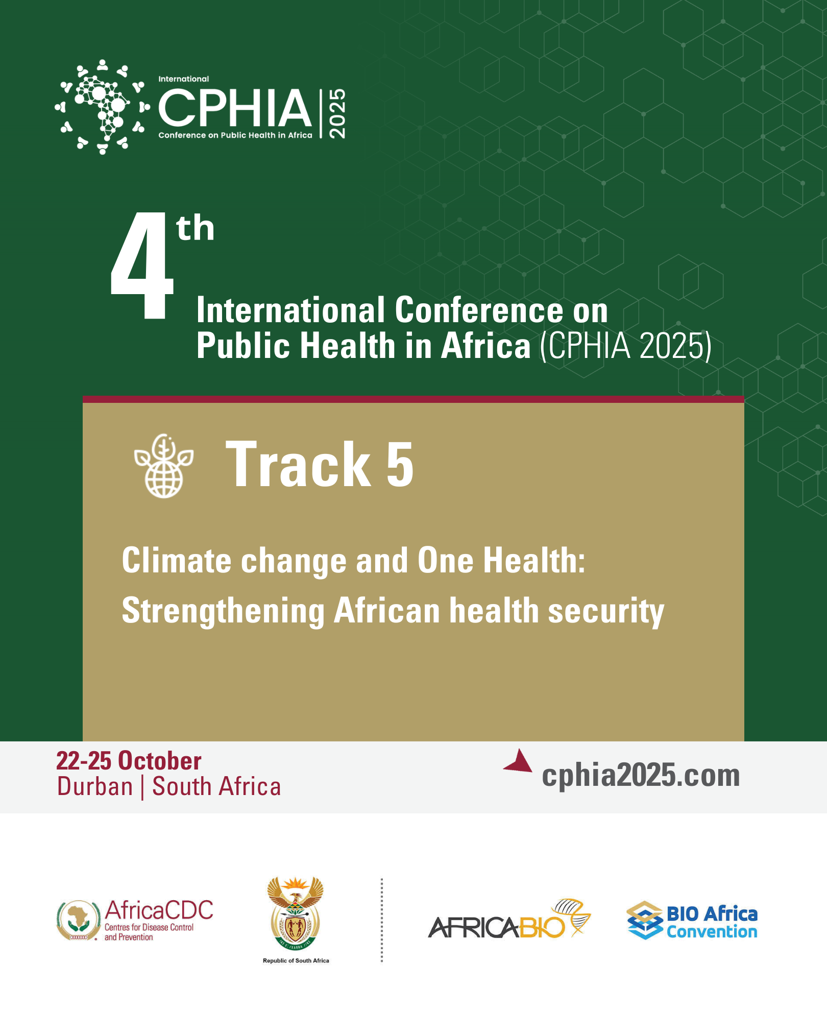 Track 5: Climate change and One Health: Strengthening Africa’s health security Tweet 1: #CPHIA2025 will address Africa’s critical link between climate change and health security. Tweet 2: Safeguarding Africa’s health from climate threats! #CPHIA2025 discusses innovative policies & digital tools for a climate-resilient future. |